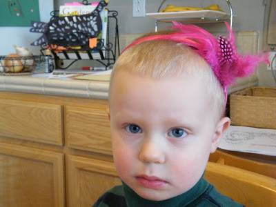 Actually. He put the headband on himself and the mopey expressions were all because he was just very hungry and wanted a snack. He couldn't understand why I was taking pictures instead of peeling a banana for him.